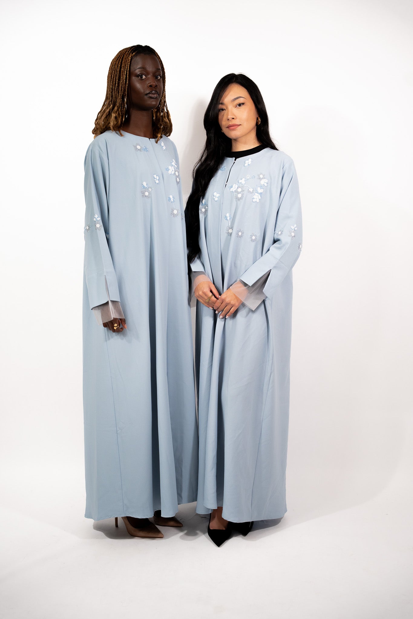 L’abaya Aylin célèbre la délicatesse et la légèreté, pensée pour celles qui recherchent la fraîcheur sans compromis sur le raffinement. Sa teinte baby blue, lumineuse et apaisante, capte la lumière tout en douceur.