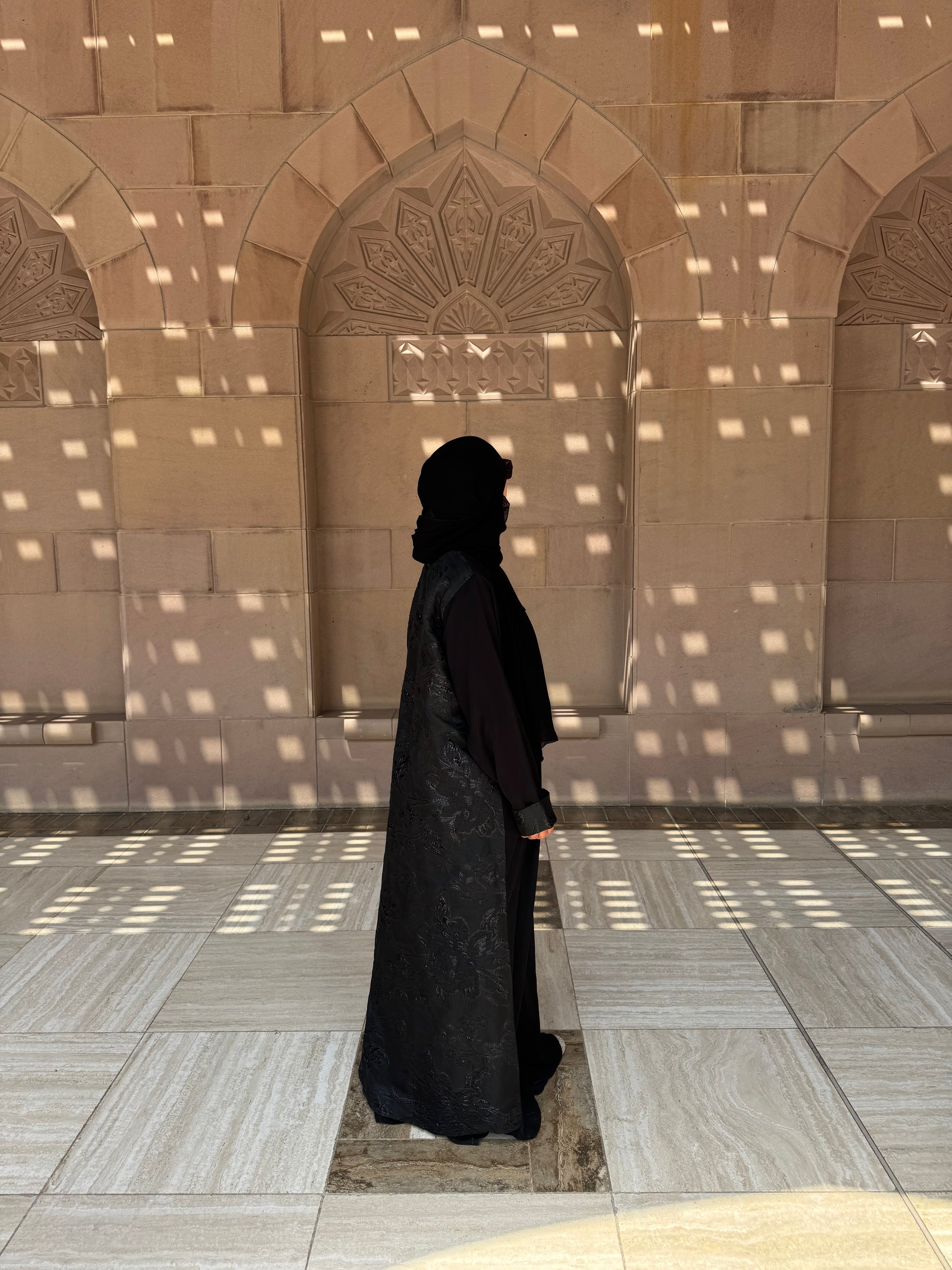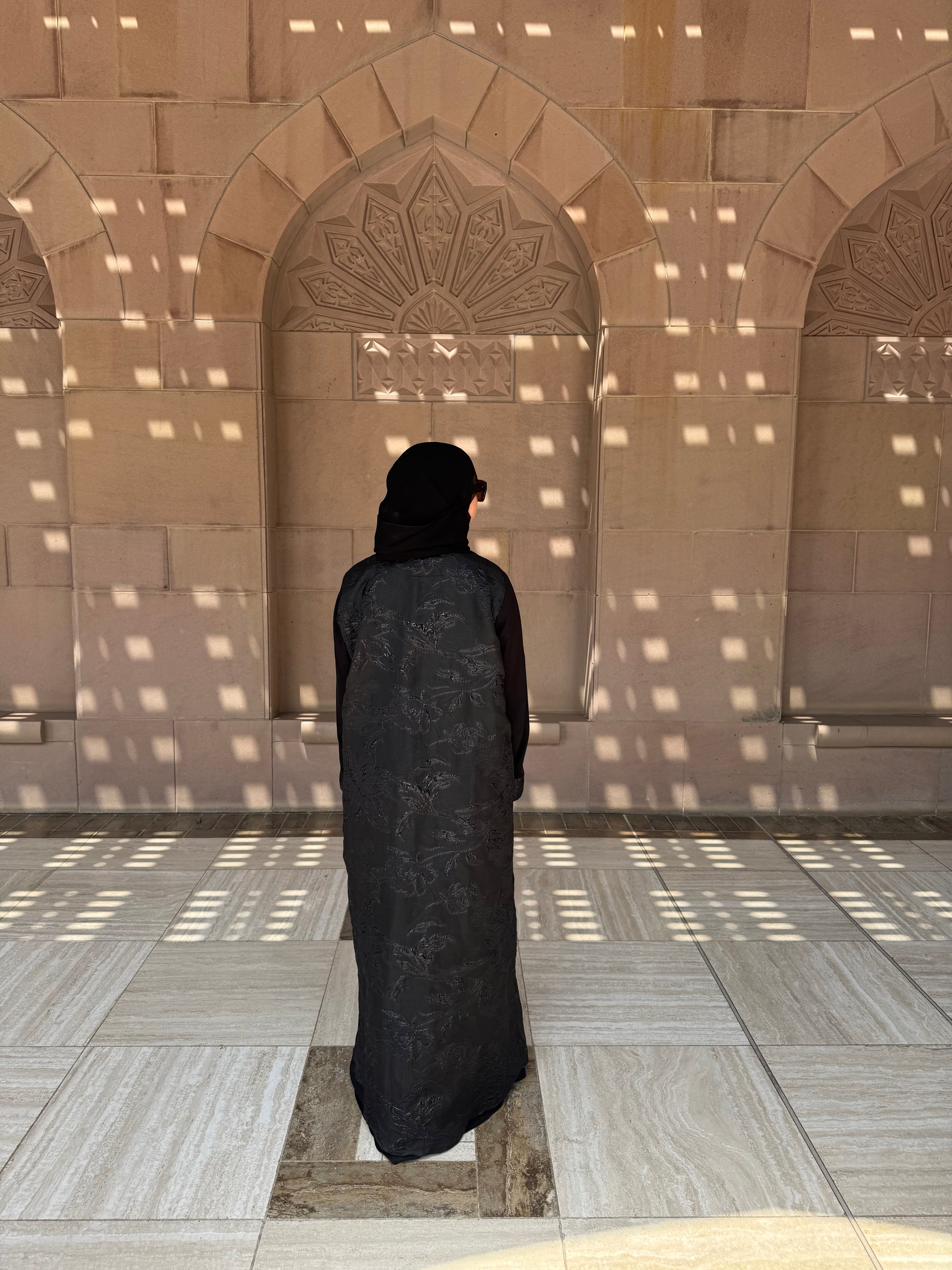 Élégante et singulière, l'abaya RYM allie sobriété moderne et raffinement dans les moindres détails.