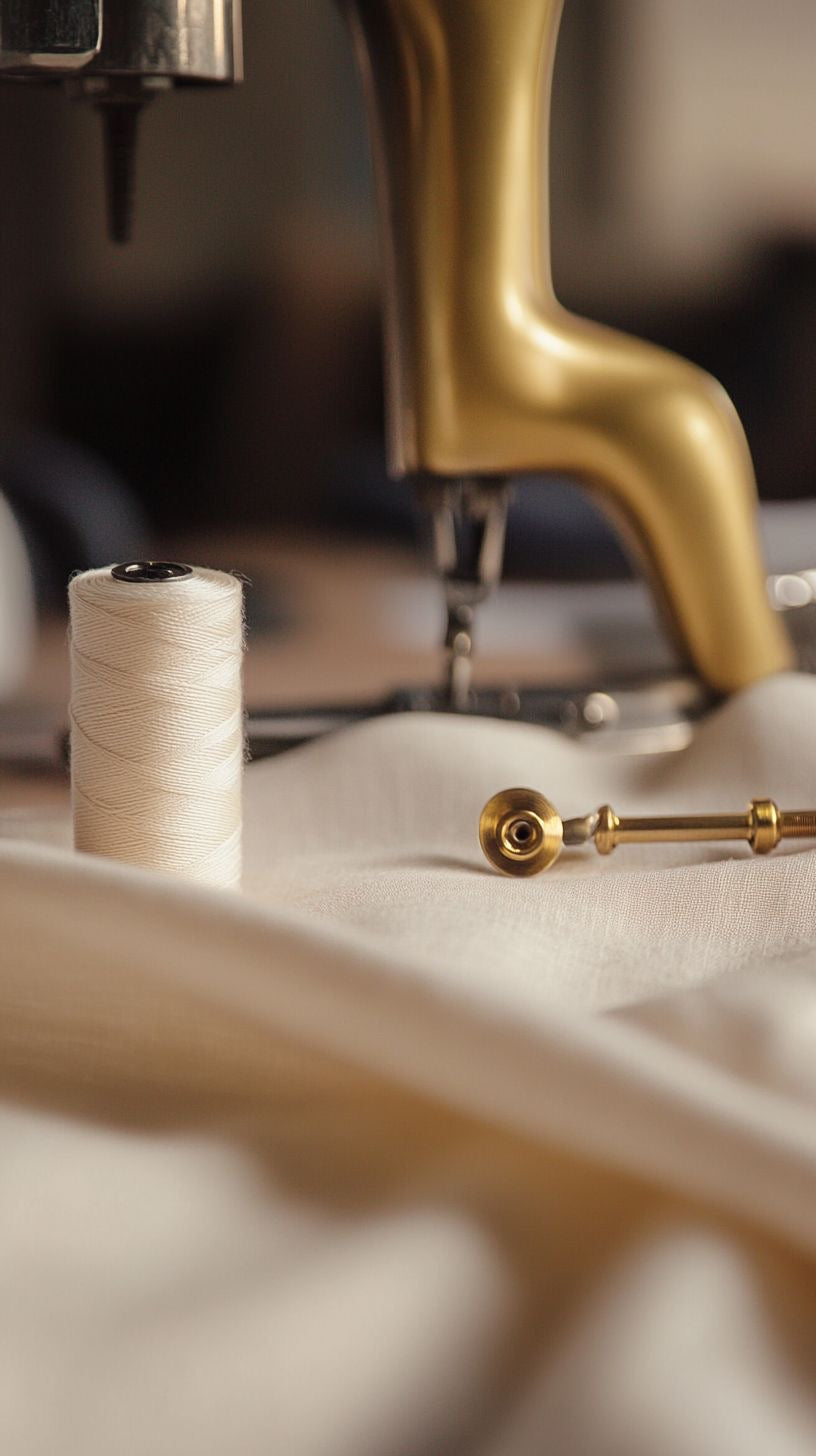 Finitions travaillées à la main : coutures soignées, perles et détails raffinés.